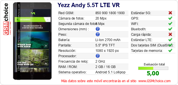 Datos del móvil Yezz Andy 5.5T LTE VR en tu página