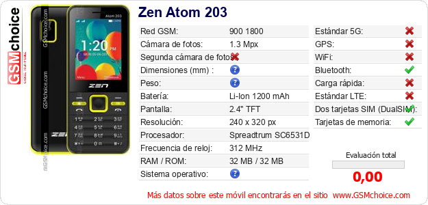 Datos del móvil Zen Atom 203 en tu página