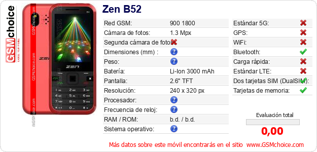 Datos del móvil Zen B52 en tu página