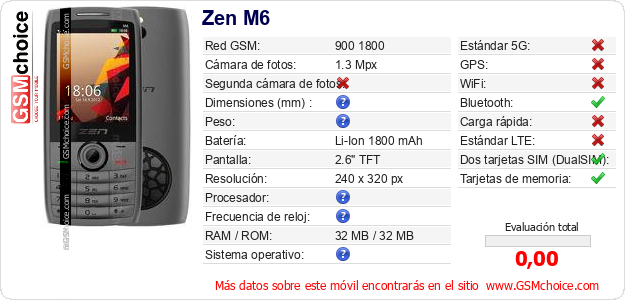 Datos del móvil Zen M6 en tu página