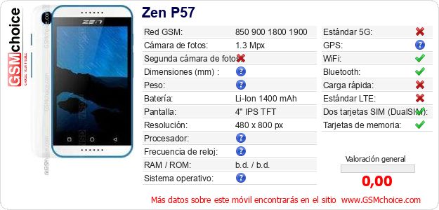 Datos del móvil Zen P57 en tu página