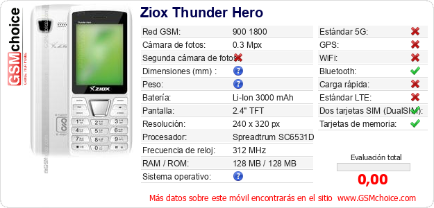 Datos del móvil Ziox Thunder Hero en tu página