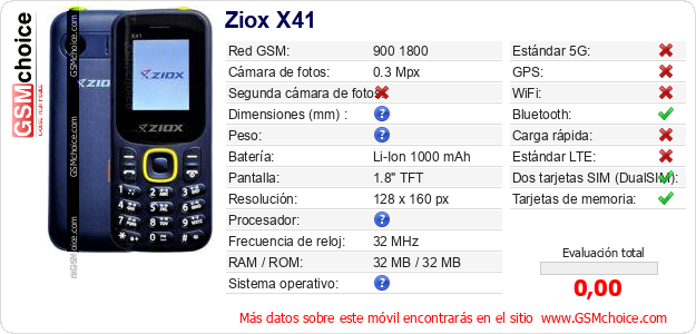 Datos del móvil Ziox X41 en tu página
