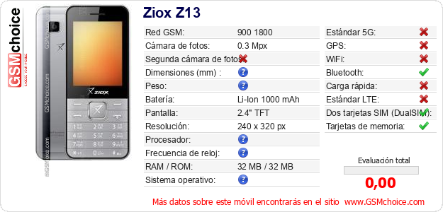 Datos del móvil Ziox Z13 en tu página