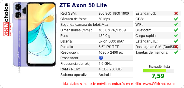 Datos del móvil ZTE Axon 50 Lite en tu página