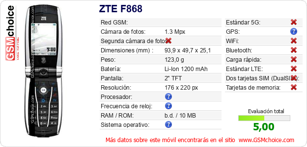 Datos del móvil ZTE F868 en tu página