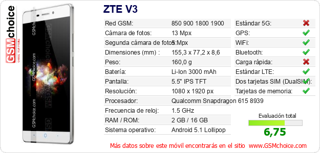 Datos del móvil ZTE V3 en tu página