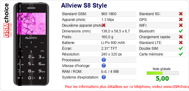 Publier les caractéristiques de ce mobile Allview S8 Style sur votre site
