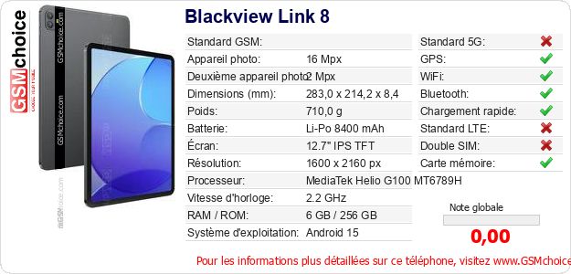 Publier les caractéristiques de ce mobile Blackview Link 8 sur votre site