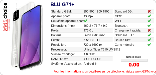 Publier les caractéristiques de ce mobile BLU G71+ sur votre site