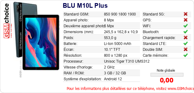 Publier les caractéristiques de ce mobile BLU M10L Plus sur votre site