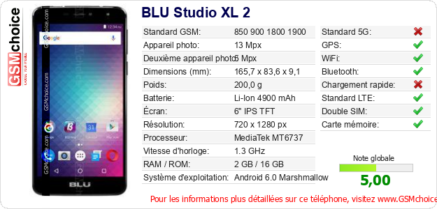 Publier les caractéristiques de ce mobile BLU Studio XL 2 sur votre site