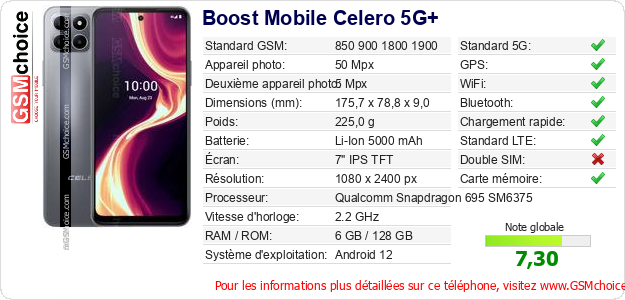 Publier les caractéristiques de ce mobile Boost Mobile Celero 5G+ sur votre site