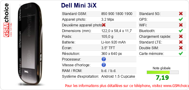 Publier les caractéristiques de ce mobile Dell Mini 3iX sur votre site