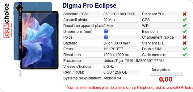Publier les caractéristiques de ce mobile Digma Pro Eclipse sur votre site
