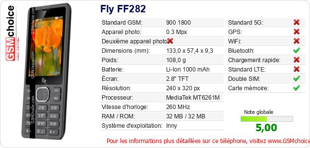 Publier les caractéristiques de ce mobile Fly FF282 sur votre site