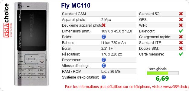 Publier les caractéristiques de ce mobile Fly MC110 sur votre site