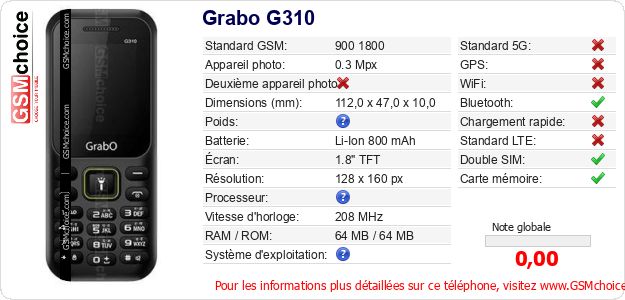 Publier les caractéristiques de ce mobile Grabo G310 sur votre site