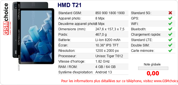 Publier les caractéristiques de ce mobile HMD T21 sur votre site