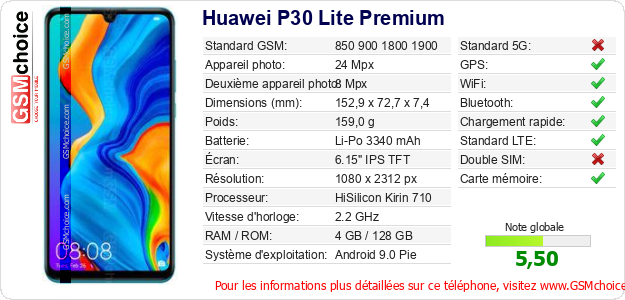 Publier les caractéristiques de ce mobile Huawei P30 Lite Premium sur votre site