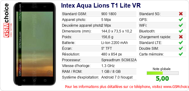 Publier les caractéristiques de ce mobile Intex Aqua Lions T1 Lite VR sur votre site