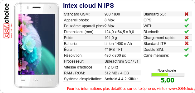 Publier les caractéristiques de ce mobile Intex cloud N IPS sur votre site