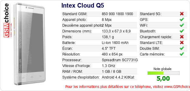 Publier les caractéristiques de ce mobile Intex Cloud Q5 sur votre site