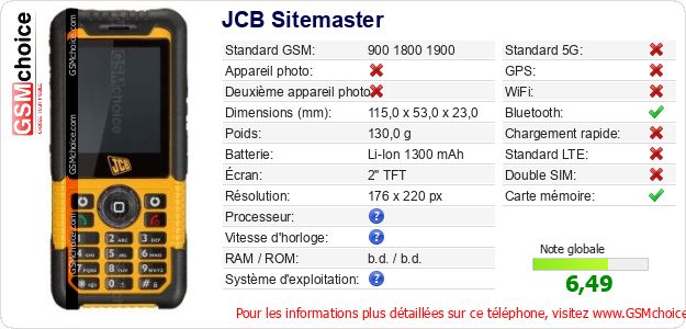 Publier les caractéristiques de ce mobile JCB Sitemaster sur votre site