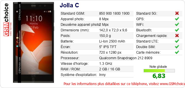 Publier les caractéristiques de ce mobile Jolla C sur votre site