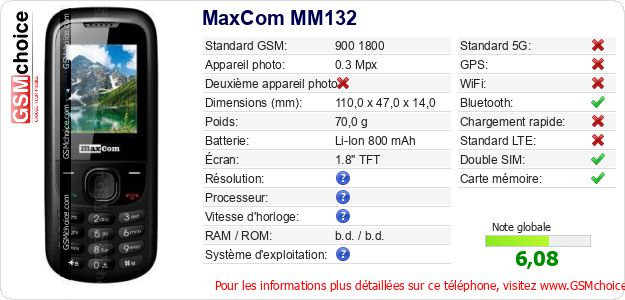 Publier les caractéristiques de ce mobile MaxCom MM132 sur votre site