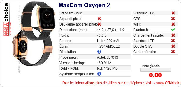 Publier les caractéristiques de ce mobile MaxCom Oxygen 2 sur votre site