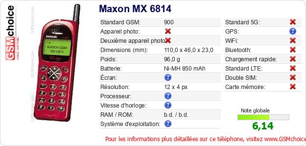 Publier les caractéristiques de ce mobile Maxon MX 6814 sur votre site