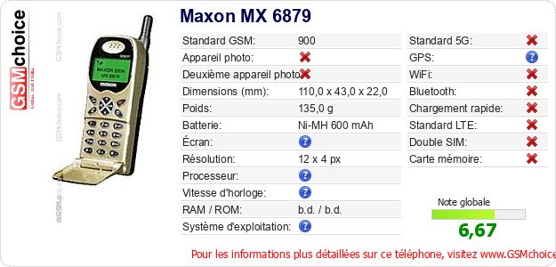 Publier les caractéristiques de ce mobile Maxon MX 6879 sur votre site