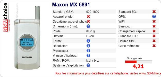Publier les caractéristiques de ce mobile Maxon MX 6891 sur votre site