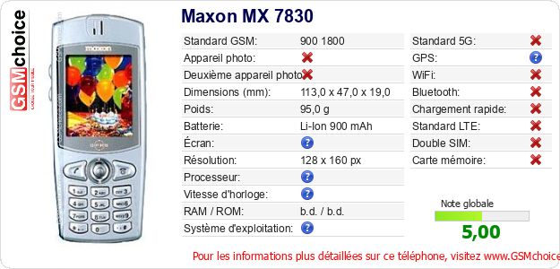 Publier les caractéristiques de ce mobile Maxon MX 7830 sur votre site
