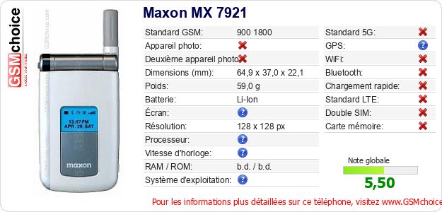 Publier les caractéristiques de ce mobile Maxon MX 7921 sur votre site