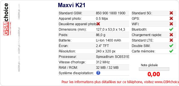 Publier les caractéristiques de ce mobile Maxvi K21 sur votre site