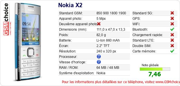 Publier les caractéristiques de ce mobile Nokia X2 sur votre site