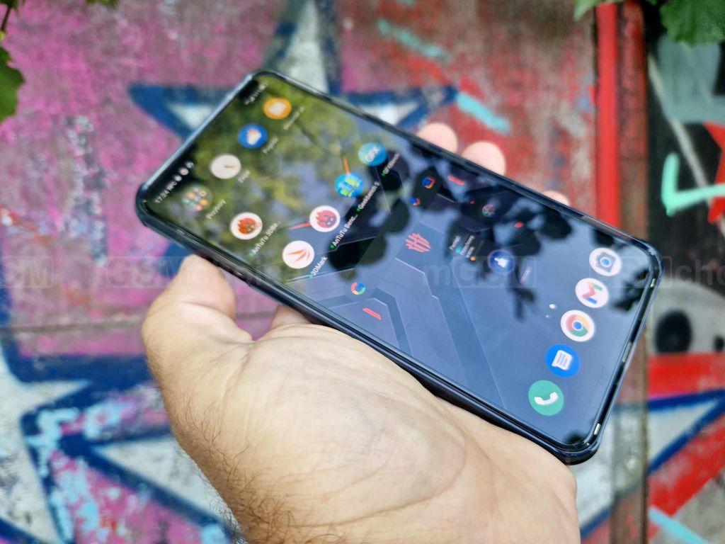 En ce qui concerne l'ergonomie de l'appareil, je n'ai rien à redire, même s'il faut garder à l'esprit que le smartphone est assez grand et lourd. Si vous vous y habituez, vous ne vous plaindrez pas de la facilité d'utilisation, même si j'ai remarqué qu'il est relativement facile d'obstruer les haut-parleurs lorsque vous tenez le smartphone en orientation paysage, c'est-à-dire comme vous le feriez pour jouer. Vous trouverez également une minijack en haut, l'USB-C en bas et un tiroir à cartes, malheureusement sans capacité de carte microSD - il ne peut contenir que deux cartes nanoSIM.