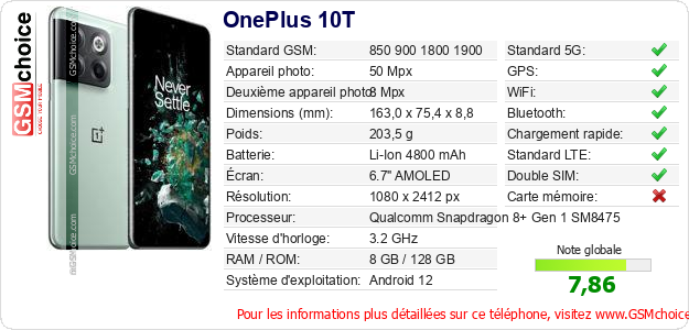 Publier les caractéristiques de ce mobile OnePlus 10T sur votre site