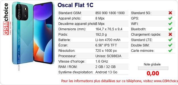 Publier les caractéristiques de ce mobile Oscal Flat 1C sur votre site