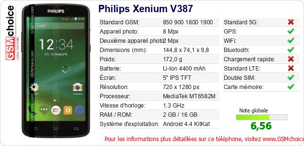 Publier les caractéristiques de ce mobile Philips Xenium V387 sur votre site