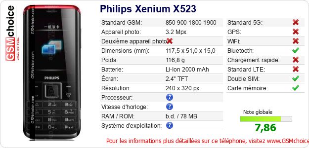 Publier les caractéristiques de ce mobile Philips Xenium X523 sur votre site