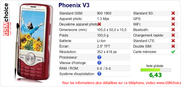 Publier les caractéristiques de ce mobile Phoenix V3 sur votre site