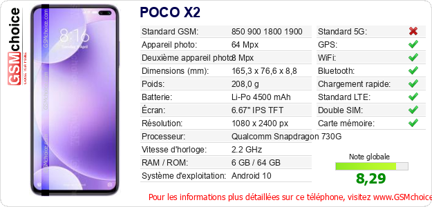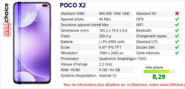 Publier les caractéristiques de ce mobile POCO X2 sur votre site
