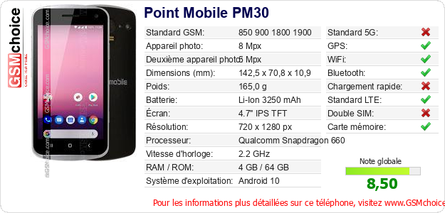 Publier les caractéristiques de ce mobile Point Mobile PM30 sur votre site
