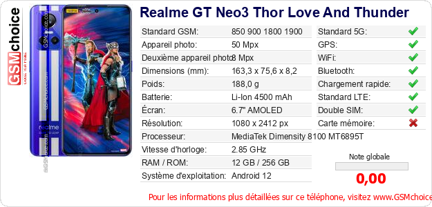 Publier les caractéristiques de ce mobile Realme GT Neo3 Thor Love And Thunder sur votre site