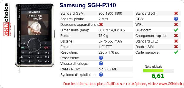 Publier les caractéristiques de ce mobile Samsung SGH-P310 sur votre site