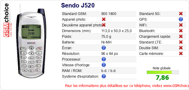 Publier les caractéristiques de ce mobile Sendo J520 sur votre site