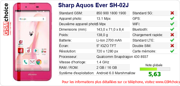 Publier les caractéristiques de ce mobile Sharp Aquos Ever SH-02J sur votre site
